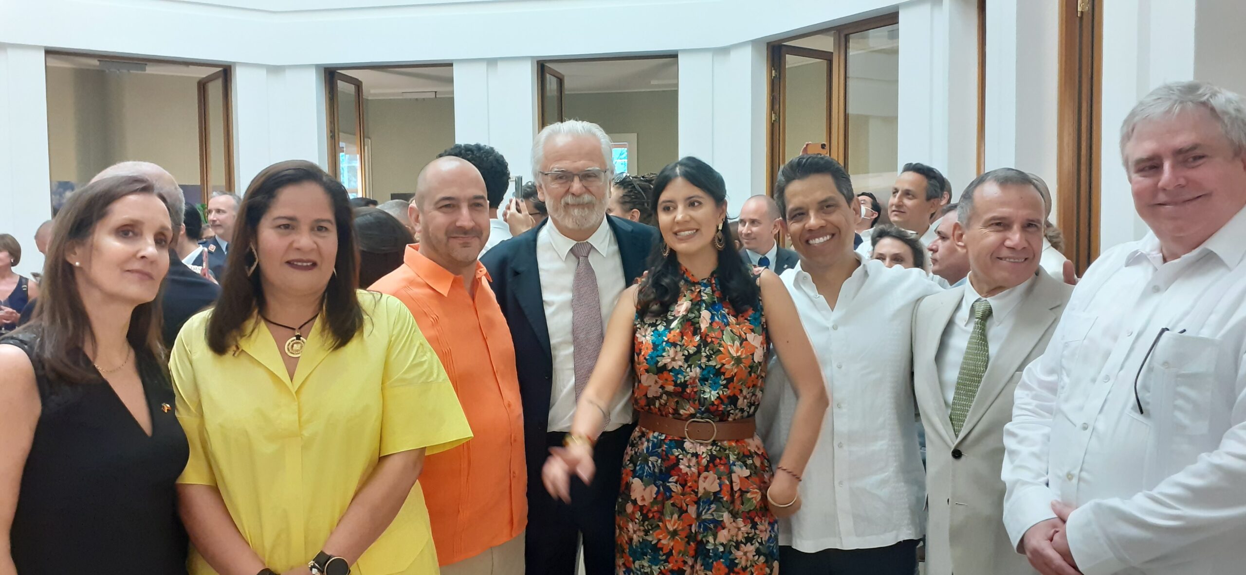 Grupo de Embajadores, de Izq. a Der.: S. E. Embajadora de Chile; Yair Salazar, Ministra consejera de Colombia; S.E. Felipe Buitrago, Embajador de Colombia; S.E Roberto Jauaribe, Embajador de Brasil; Ma. Catalina Rodríguez, esposa del Embajador de Colombia; S. E. Embajador de México: S.E. José Schialer, Embajador de Perú; S.E. Embajador de Panamá.